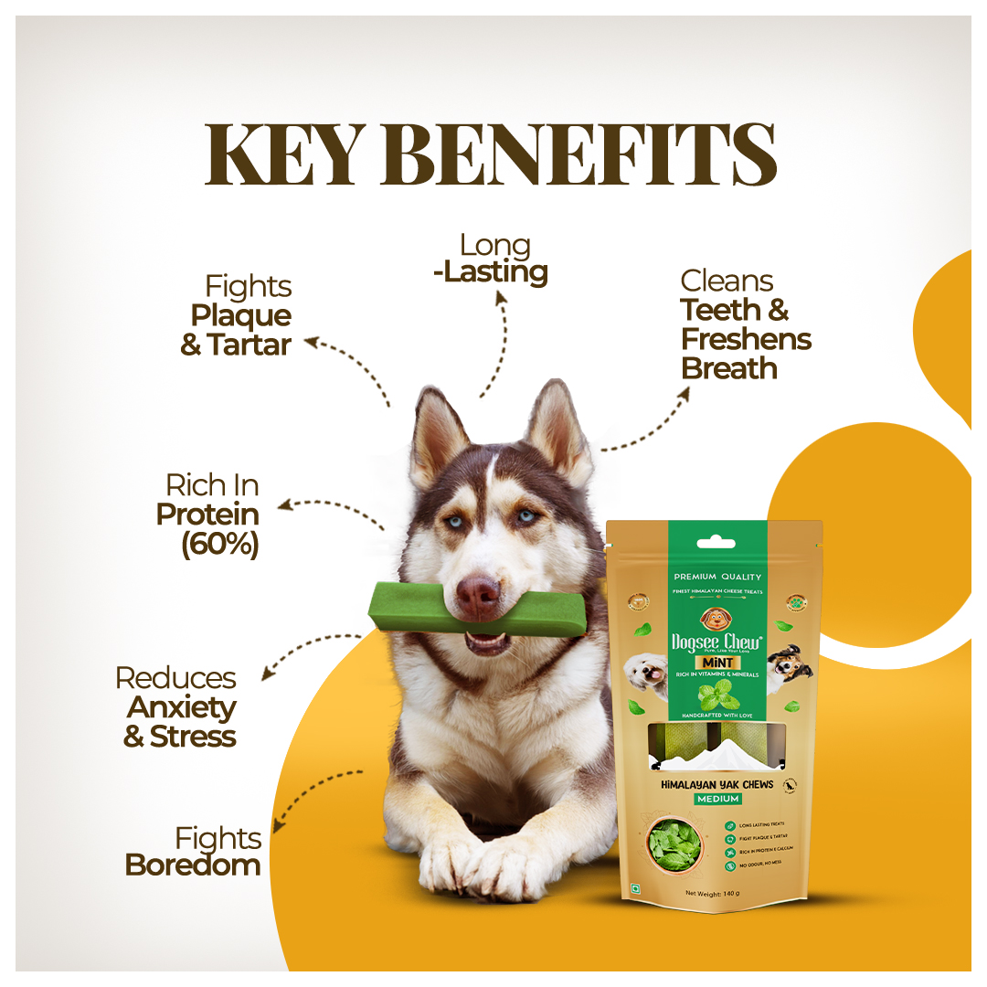 Give your dog the gift of taste, health, and lasting satisfaction with the Dogsee Mint Himalayan Yak Chews Medium Pack of 4, Medium Pack of 6. Made from centuries-old Himalayan recipes, these nutrient-rich treats are smoke-dried to perfection and enhanced with refreshing mint. Suitable for small to medium breeds, they naturally fight plaque, tartar, and odor while promoting fresh breath, strong teeth, and healthy gums. With long-lasting chewability and wholesome nutrition, these yak chews for dogs are the perfect balance of flavor, function, and fun.