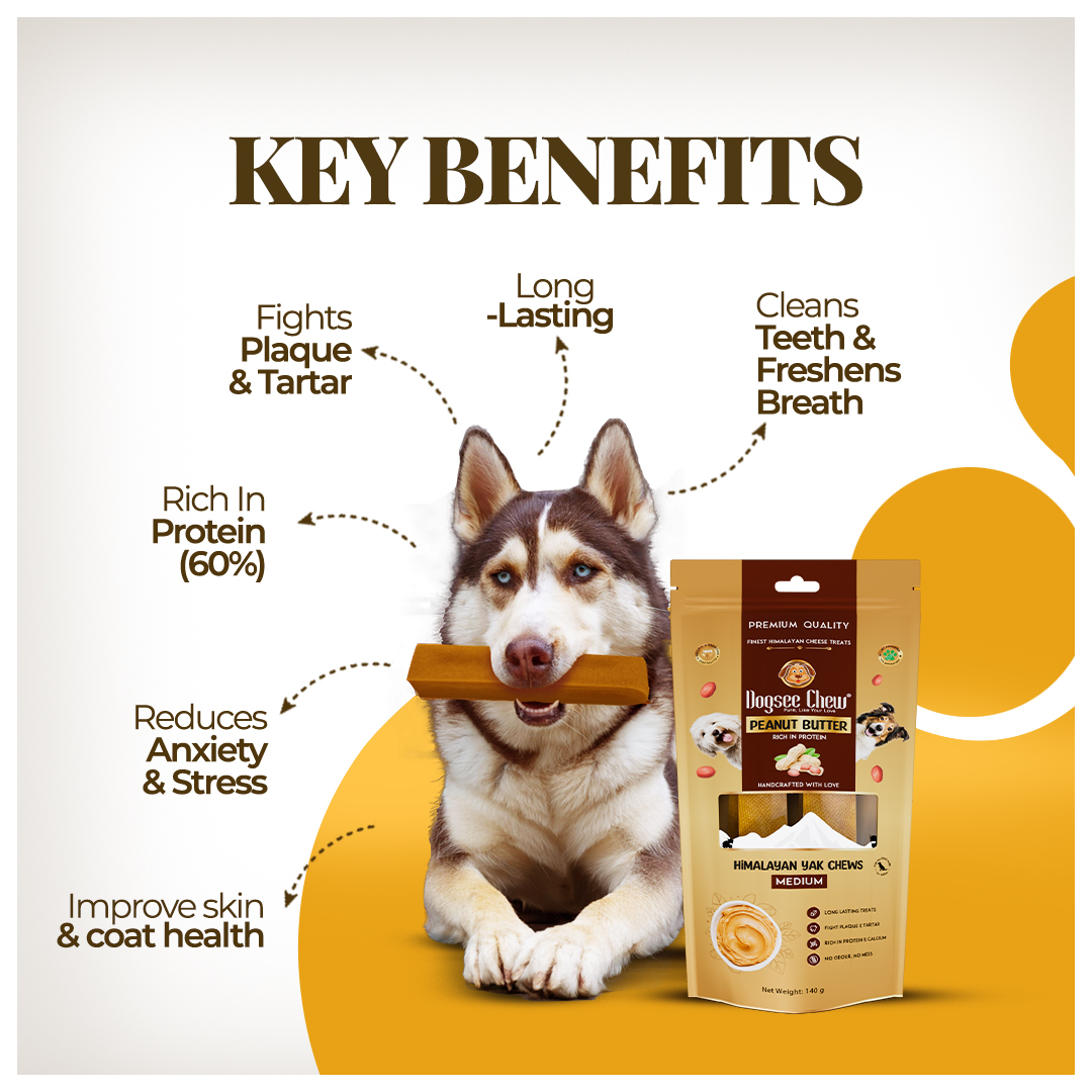Great for Oral Hygiene - The hard texture of Dogsee Peanut Butter Yak cheese chews keep your dog’s dental health in check. They help freshen breath, remove plaque & tartar, and strengthen teeth & gums.